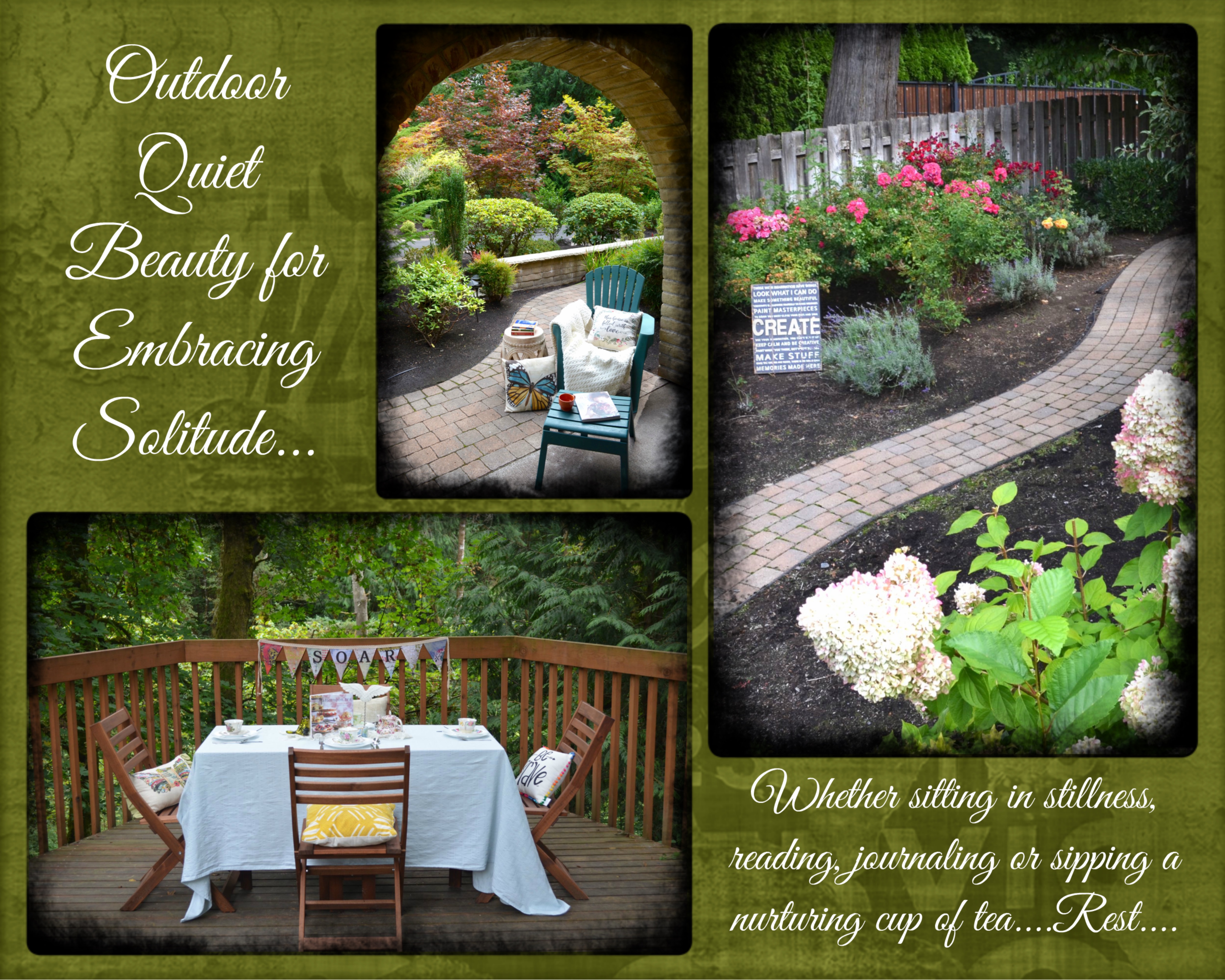 There will be several areas or quiet spots for contemplation and listening around the property. Our heart is to provide several spaces of unstructured free time for each attendee to participate in what best nourishes their soul. Even if our Northwest weather gives us rain, there will be beauty in the experience!
